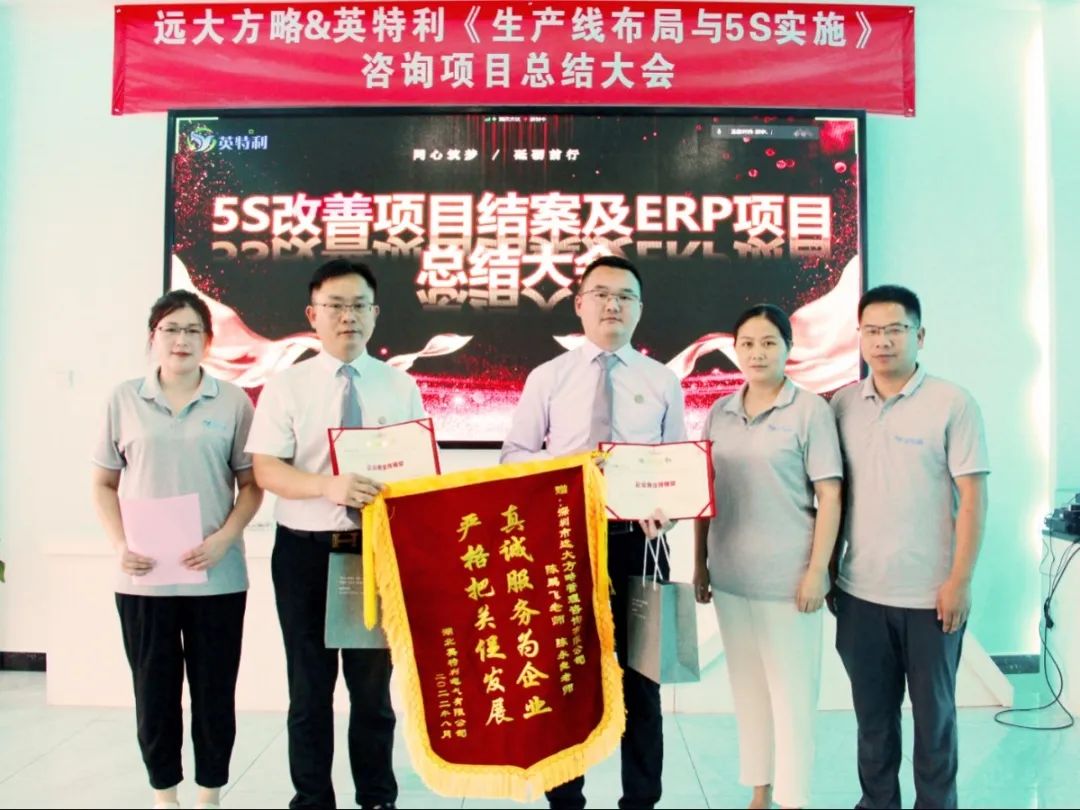 會上,公司高層還向遠大方略頒發(fā)了錦旗表示對項目成果的認可,為項目老師頒發(fā)了感謝信;與老師一起獎勵表彰了在項目中表現(xiàn)優(yōu)秀的團隊和個人。鼓勵大家在后續(xù)的工作中,繼續(xù)實踐5S管理,創(chuàng)建良好的企業(yè)文化,持續(xù)提升個人價值與企業(yè)形象。