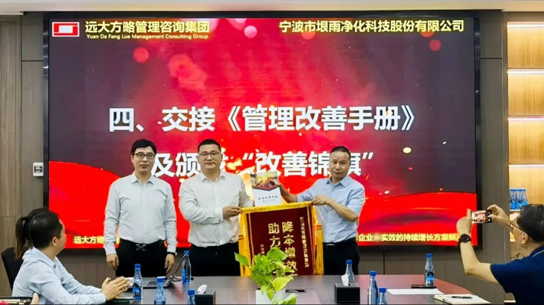 會上,遠大方略項目組與垠雨科技交接了《管理改善手冊》,林董向遠大方略授予了錦旗以表認(rèn)可。