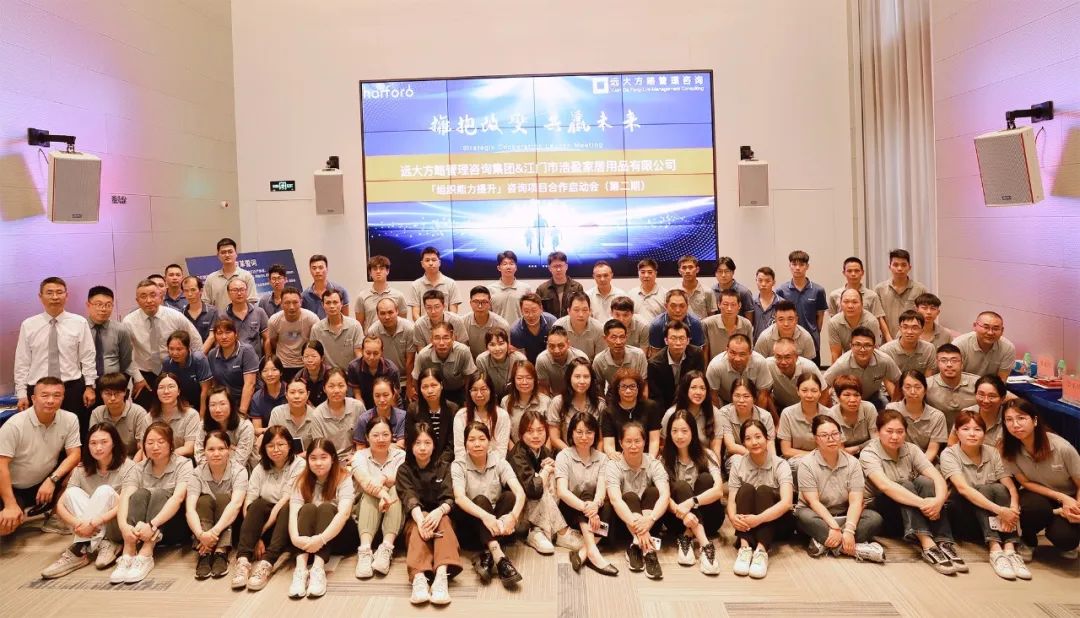 擁抱改變,共贏未來,江門市浩盈家居用品有限公司(以下簡稱“浩盈家居用品”)攜手遠大方略落地《組織能力提升》變革,通過一期12個月的改善,改善成果顯著,繼續(xù)攜手遠大方略開啟二期項目,進一步深化變革,打造強有力的組織,促進團隊內(nèi)部持續(xù)造血,保持組織活力,實現(xiàn)基業(yè)長青。