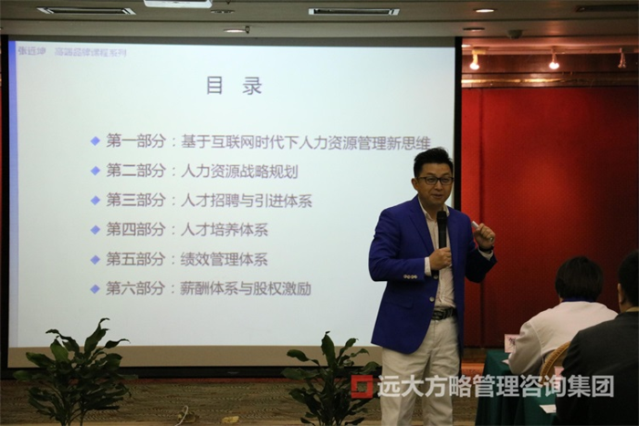 此次課程,我們很榮幸地邀請到了我們遠(yuǎn)大方略人力資源模塊的合伙人張遠(yuǎn)坤老師,張老師是智慧組織力、雙因子模式倡導(dǎo)者、人力資源管理實戰(zhàn)培訓(xùn)顧問,其幽默的講課風(fēng)格一度讓在座的“同學(xué)們”拍手稱絕。主持人由我們遠(yuǎn)大方略的咨詢師劉建斌老師擔(dān)任。