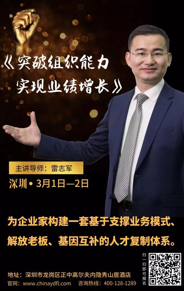 如果您認可“先人后事”的理念,或者想進一步了解企業(yè)核心圈構建、人才營盤打造、人才生產線建立等相關內容,歡迎參加遠大方略聯合創(chuàng)始人雷志軍導師3月1日、2日在深圳的《突破組織能力,實現業(yè)績增長》的組織突破專題課,我們一起探討,相互交流,期待您的光臨。