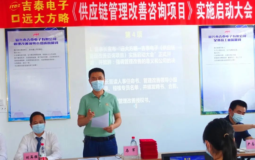 近日,宜興市吉泰電子有限公司(以下簡稱“吉泰電子”)攜手遠(yuǎn)大方略啟動《供應(yīng)鏈管理》咨詢項(xiàng)目,改善供應(yīng)鏈管理系統(tǒng),促進(jìn)企業(yè)降本增效。