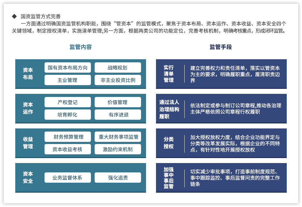 為了更好推動國有資本投資、運(yùn)營公司,提升國有資本運(yùn)營能力,遠(yuǎn)大方略認(rèn)為,需要進(jìn)一步明確國有資本投資、運(yùn)營公司的定位,基于國有資本整體視角進(jìn)行產(chǎn)業(yè)和業(yè)務(wù)的戰(zhàn)略定位,并通過強(qiáng)化企業(yè)內(nèi)部管理,提升國有資本的運(yùn)營效率。