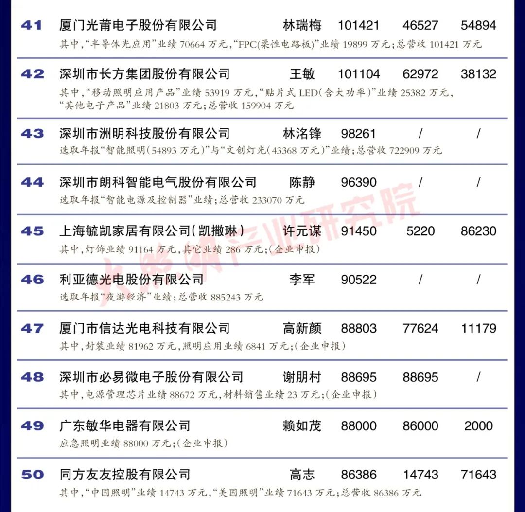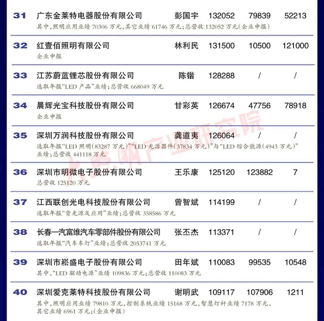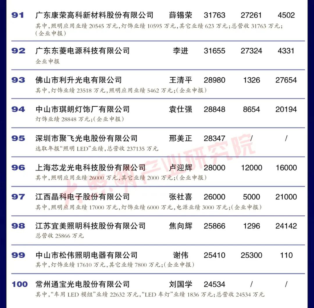 從銷售規(guī)模來看,中國led燈排行榜中有3家企業(yè)銷 售突破100億元,有4家企業(yè)銷售在50 100億元之間,有35家企業(yè)銷售在10-50億元之間,有35家企業(yè)銷售在5-10億元之間,余23家企業(yè)銷售在5億元以下。