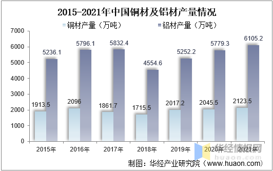 電線電纜主要由導(dǎo)體線芯、絕緣層和護(hù)層等部分構(gòu)成,其中導(dǎo)體線芯主要由銅材、鋁材構(gòu)成,銅、鋁原材料在電線電纜產(chǎn)品所需的原材料中占比最大。我國(guó)是世界上第二大產(chǎn)銅國(guó)和第一大原鋁生產(chǎn)國(guó),市場(chǎng)供應(yīng)充足。據(jù)資料顯示,2021年我國(guó)銅材產(chǎn)量為2123.5萬(wàn)噸,同比增長(zhǎng)3.8%;鋁材產(chǎn)量為6105.2萬(wàn)噸,同比增長(zhǎng)5.6%。