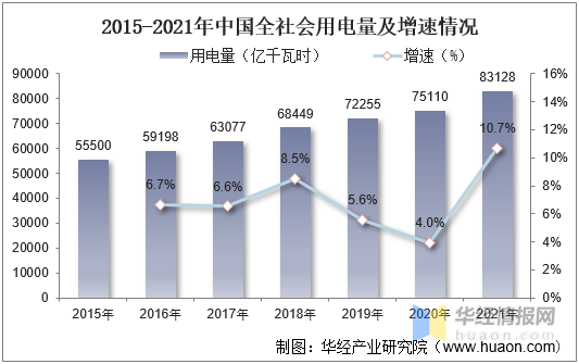 電力行業(yè)是電線電纜行業(yè)最主要的應(yīng)用領(lǐng)域,近年來(lái),我國(guó)全社會(huì)用電量不斷增長(zhǎng),推動(dòng)了我國(guó)電線電纜需求的增長(zhǎng)。據(jù)資料顯示,2021年我國(guó)全社會(huì)用電量達(dá)83128億千瓦時(shí),同比增長(zhǎng)10.7%。