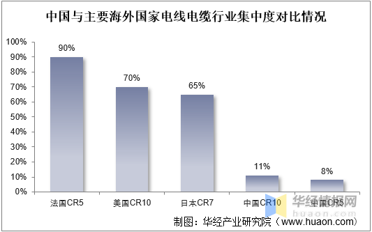 雖然我國(guó)電線電纜行業(yè)規(guī)模位居世界前列,但與發(fā)達(dá)國(guó)家相比產(chǎn)業(yè)集中度仍然偏低,據(jù)統(tǒng)計(jì),2020年我國(guó)電線電纜行業(yè)CR5為8.03%,CR10為11.1%;而美國(guó)前10名線纜制造商(如通用、百通、康寧、南線等)占據(jù)了市場(chǎng)份額的70%左右;日本7大線纜企業(yè)(如古河、住友、滕倉(cāng)、日立、昭和等)占市場(chǎng)份額的65%以上;法國(guó)五大線纜企業(yè)(耐克森、新特等)包攬了法國(guó)市場(chǎng)的營(yíng)業(yè)額,占據(jù)了法國(guó)市場(chǎng)份額90%以上。