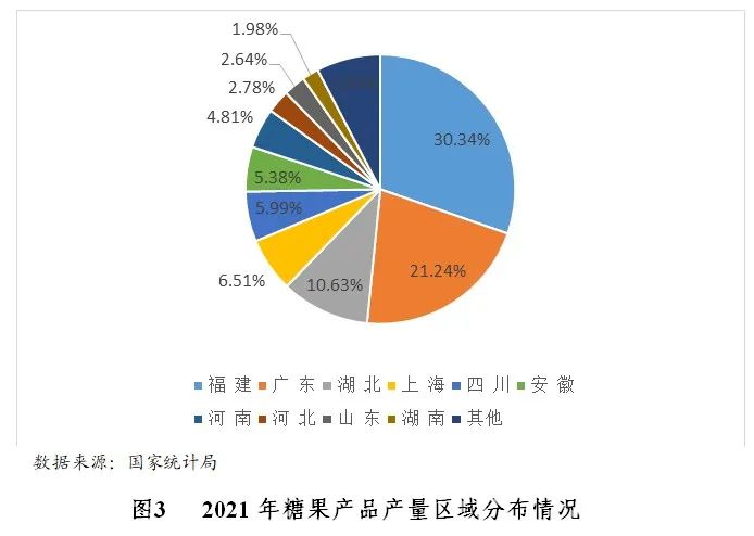 從細(xì)分行業(yè)來(lái)看,糖果主要分布在東南部沿海地區(qū),包括福建、廣東兩省產(chǎn)量占全國(guó)的50%以上。方便面主要集中在河南、廣東以及京津冀地區(qū)。乳制品主要分布在河北、內(nèi)蒙、山東三省。罐頭主要分布在福建、湖南、新疆三省。