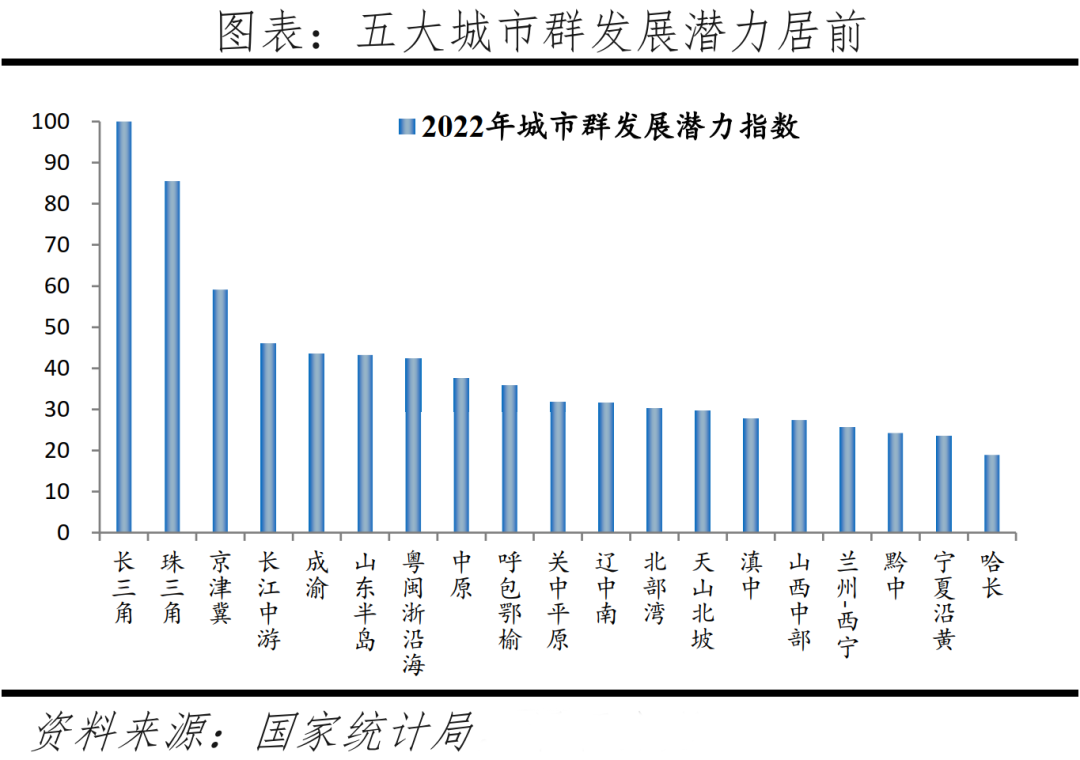 以中心城市為引領的都市圈城市群更具生產效率,更節(jié)約土地、能源,是支撐中國經濟高質量發(fā)展的主要平臺,是中國當前以及未來發(fā)展的重點。在城市群層面,19個城市群的核心在于京津冀、長三角、珠三角、長江中游、成渝5個城市群。