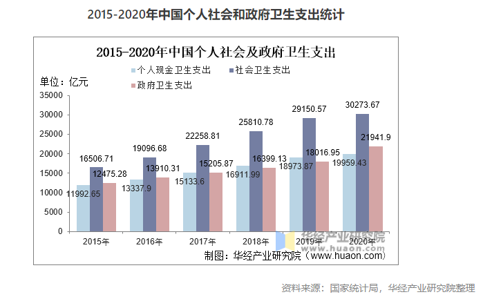 近年來,我國醫(yī)療資源不斷豐富,醫(yī)療技術水平不斷提升,衛(wèi)生支出總體呈上升趨勢,2020年全國衛(wèi)生總費用預計達72306.4億元,占GDP百分比為7.12%,個人衛(wèi)生支出為2萬億元左右。社會衛(wèi)生支出大概3萬億元,政府衛(wèi)生支出2.2萬億元。衛(wèi)生支出費用持續(xù)增長,醫(yī)藥制造行業(yè)需求市場發(fā)展空間廣闊。