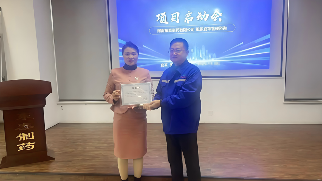 為促進項目的有效落地,明確各崗位職責,強化責任意識,會上東泰制藥苗董向遠大方略項目組頒發(fā)了授權書,馬總為各位老師頒發(fā)了聘書,此次授權和任命不僅體現(xiàn)了東泰制藥對咨詢團隊的高度信任,也彰顯了公司破除阻力、推動變革的決心。