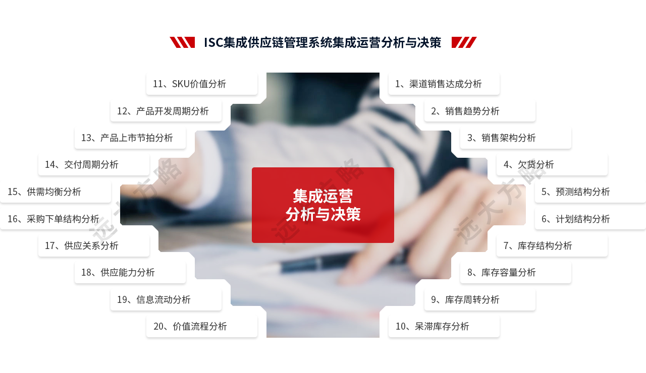 2、輔導(dǎo)模塊:推行ISC集成供應(yīng)鏈管理,主要圍繞產(chǎn)品運(yùn)營管理、接單規(guī)則和庫存管理、銷售預(yù)測管理、S&OP管理、公司計(jì)劃模式優(yōu)化、物料管理體系等